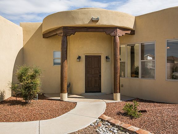 Beautiful custom pueblo style home features 2 living areas, 3 fireplaces, gourmet kitchen with hickory cabinets, granite countertops, stainless steel appliances, walk-in pantry, and wine closet. 20x20'' porcelain tile, vigas, raised ceilings throughout home. Tongue & groove ceiling in main living area. Master bdrm has see through fireplace, jetted tub and separate shower. Full bath and walk-in closet for each bedroom. Refrigerated air and 9 zone radiant heat keeps home comfortable year round. Drip irrigation in xeriscaped front yard & backyard w/fruit trees. Hot tub stays. Stunning Views of the Sandia Mountains! BONUS: Half Acre Lot Next Door Available For Only $40,000 With Acceptable Offer On Home (MLS#850522). Preserve The Incredible Views, Build-on Or Sell And Lower Your Actual Cost.