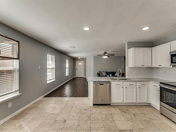 This cozy 3 bed 2 bath offers 1507 square foot of move in ready goodness! Conveniently located seconds from 2499 and just minutes from I-35 and is zoned for Guyer high school. With new paint, roof, fence, 2 inch wood blinds, and new carpet in all bedrooms. With large living room equipped with fireplace and beautiful wood plank tile and an open kitchen with eat in dining, this beautiful home wont be around for long... And don't forget the beautifully landscaped lawn with large backyard for entertaining!