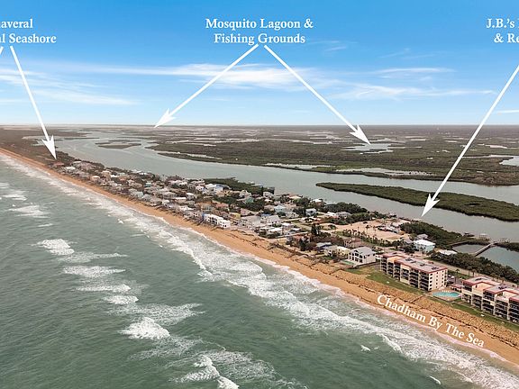 Home or Vacation? How about both! Enjoy prominent vacation-like views of the beach, ocean and river while feeling at home in this spacious 3-BR/2BA condo in excellent condition at Chadham by the Sea, one of the best maintained condominiums on the beach! Offered furnished and in turn-key condition. The split-floor plan maximizes comfort and space with an en-suite primary bedroom with large walk-in closet, walk-in shower, double vanity sinks and floor-to-ceiling glass windows and sliders. Imagine waking up and raising the electric blinds from bed to soak in an epic sunrise to start the day! Kitchen features granite counters, stainless appliances including an induction range and LED lighting. Between the kitchen bar, dining area, living room and balcony there's tons of space for entertaining friends and family or simply enjoying the privacy of home. There's even a full size washer and dryer for added convenience. The 4th floor location allows for completely unobstructed views and additional privacy without having a resident living above. There are electronic hurricane shutters for added protection/security. This private community is located along the car-free beach and complements coastal living with tropical landscaping, heated pool, pickleball/tennis court, basketball hoop, private beach walk-over and onsite maintenance and security. Property has controlled access with a security gate and cameras for peace of mind. Recent improvements to the natural coquina rock revetments provide added storm protection. This is the very last condominium to the south before Bethune Beach turns into Canaveral National Seashore (within walking or riding distance). It's also near the famous JB's Fish Camp restaurant. End your day with beautiful sunset views over the river from the front balcony and then stars gazing at night with minimal light pollution. And don't forget about having a front row seat for watching rocket launches from Kennedy Space Center.
