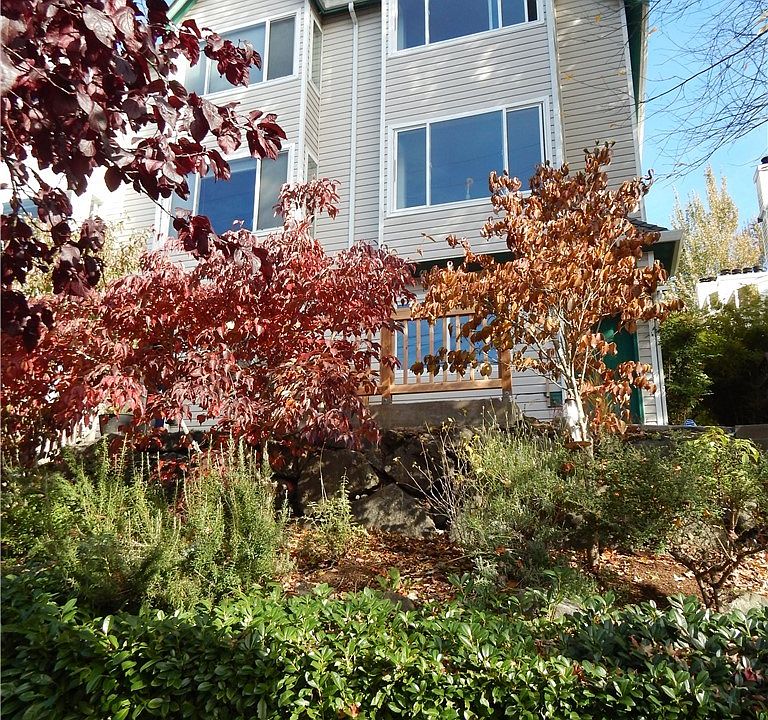 Freshly updated 3 Bedroom, 2 Bath Town Home with no HOA Dues. Stylish, new cabinets, Quartz Counters, S/S Appliances, Flooring, LED Lighting & Fresh Paint. New Roof 2016. Sun filled end unit has windows on 3 sides. Fireplace flanked by built in shelving. New Patio with afternoon sun. 1 car attached garage off alley. Partial Sound and Mountain Views. 1 Block to Morgan Junction/Rapid C Ride Buses. 82 Walk Score.