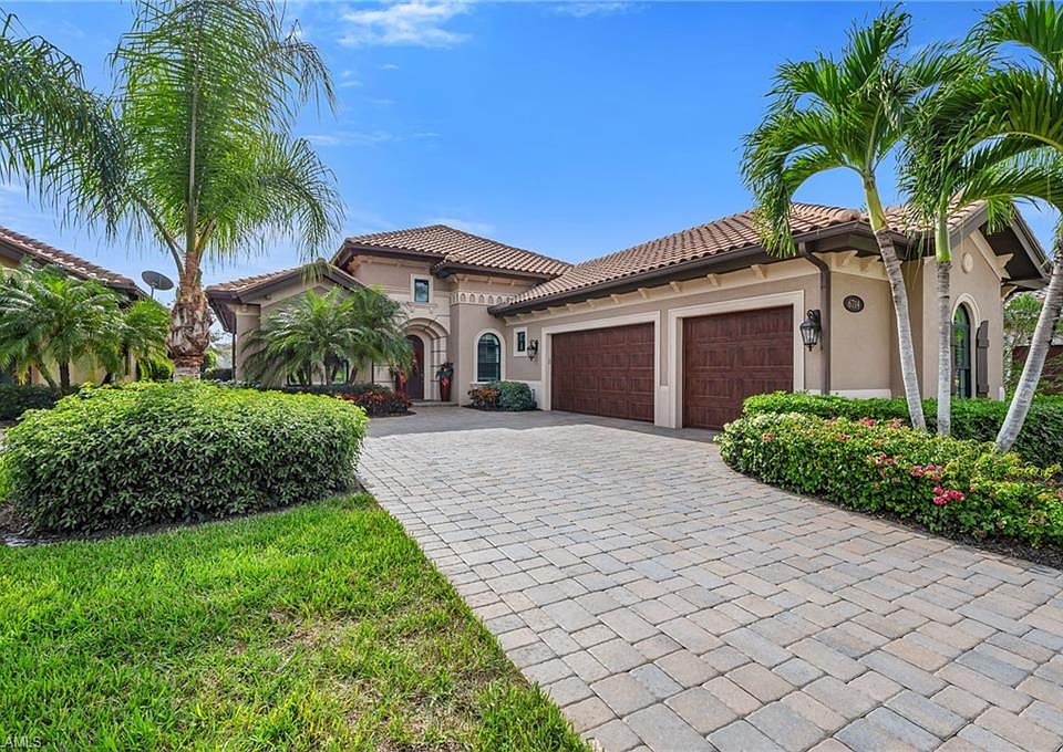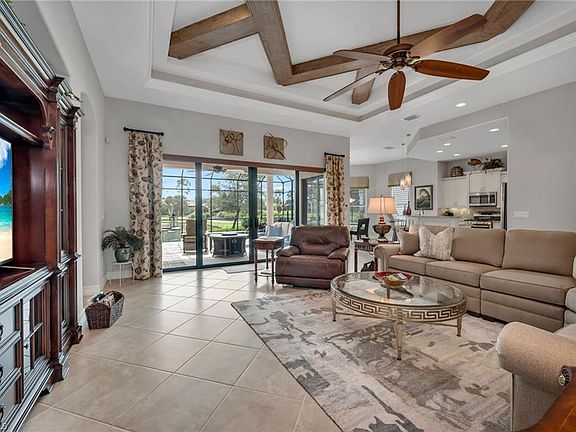 Welcome home to Canwick Cove! This exceptional 3BR+, 3BA home is nestled in one of the premier gated communities in Lely Resort, and is offered turnkey, so you can enjoy the wonderful SWFL lifestyle immediately upon closing! This property boasts a coveted water view just off The Classics course’s par 4 8th hole. With a bright, open floorplan, the entryway leads to a great room with volume tray ceilings and a dining area that’s perfect for entertaining. The gourmet kitchen features SS appliances including natural gas cooktop, pantry & inviting eat-in area. The master BR features an ensuite bathroom, his & her closets, plantation shutters, and large windows with water views. This property features 2 additional bedrooms and 2 full baths. There is a sizable home office that could serve as an additional bedroom or den. Spotless 3-car garage. Sliders open to a screened-in lanai and private pool area to enjoy the 8th green & tranquil lake views. The mandatory Players Club & Spa membership offers access to fine dining, resort pools, tennis, pickleball, and more. White sand beaches, downtown Naples, and Marco Island are just a short drive away.  Lely Resort is home to 3 great golf courses!