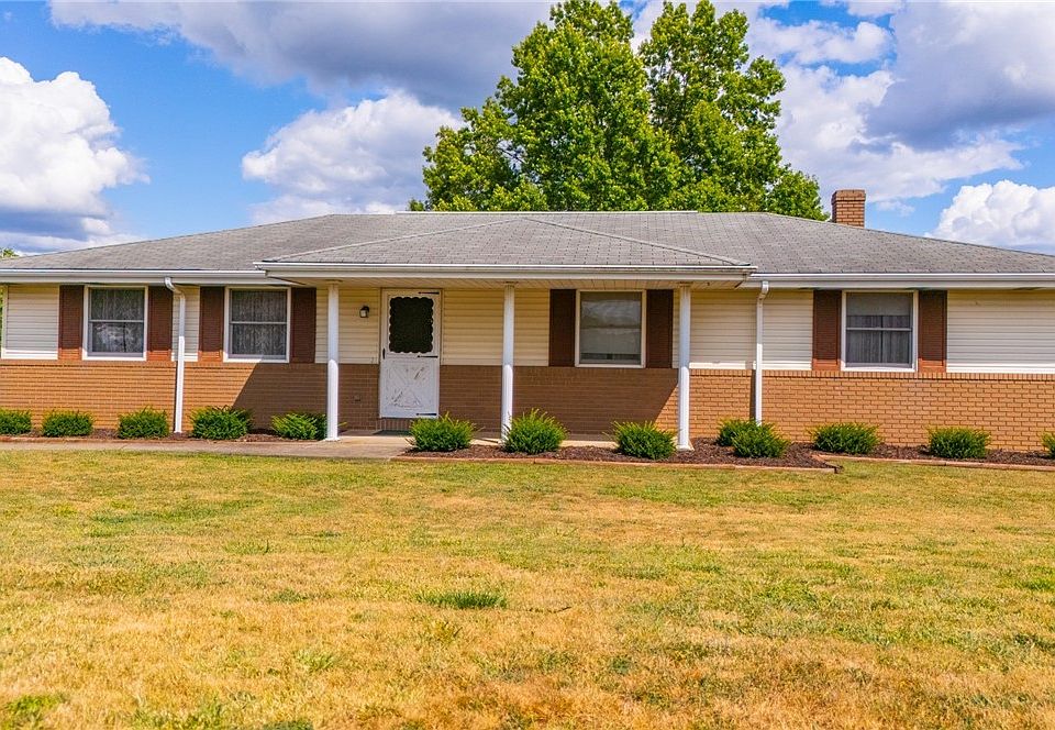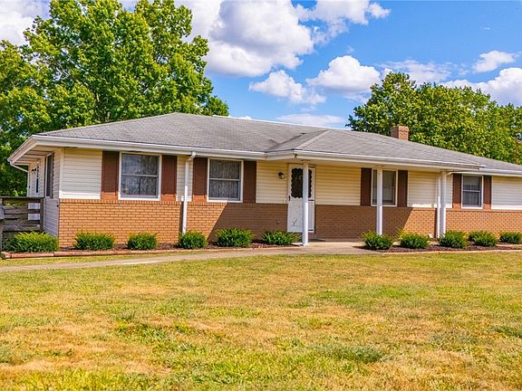 Welcome to this spacious 4 bedroom 2.5 bath ranch style home on 3/4 acre outside of city limits. This house will shine with your visioned updates to make it your own! Large living room, dining room and attached kitchen. Primary suite with full bath and large closet. 2 additional bedrooms and a full bath complete your spacious main floor living area. The lower level has a finished recreation room with a cozy wood burning fireplace. This walks out to a nice rear patio that has a large covered metal roof carport or picnic/grilling and chilling area. Another primary bedroom with its own half bath is perfect for family or guests. The large laundry room off the 2 car garage is also in the lower level. The home is landscaped for nice curb appeal and includes in the rear yard a large oak tree, dogwood tree, spacious shed, a level lot and huge driveway which wraps around to back, and always useful a clothesline. Enjoy peaceful views outside on the side deck or relax outback under the covered patio.