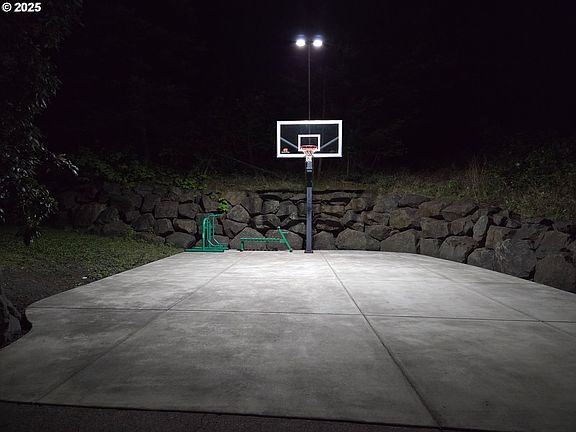 OREGON TIMBER TREASURE! Move-in ready and a once-in-a-lifetime opportunity to own this full-scribe custom Oregon Log Home — a rare architectural gem tucked in one of Oregon’s most beautiful neighborhoods, Thurston Hills. This handcrafted timber home is more than a residence; it’s a statement of craftsmanship, comfort, and Northwest lifestyle. Set on a sprawling 0.43-acre double corner lot, the home perfectly balances peaceful country living with urban convenience. Tons of windows fill the interior with natural light, highlighting the vaulted ceilings, massive exposed logs, and floor-to-ceiling rock fireplace, creating a warm, inviting atmosphere. Bruce hardwood floors run throughout, tying the space together. The layout features three bedrooms and a spacious loft, offering flexibility for a home office, guest suite, or creative retreat. The kitchen blends function and style with custom cabinetry, tile countertops, and a Viking Professional gas range. Additional features include custom lighting, a central vacuum system, and a newer forced-air HVAC, ensuring comfort year-round. When the weather turns nice, your living space expands outdoors with 1,300 sq. ft. of elevated outdoor living across a wrap-around aluminum deck — complete with a built-in dumbwaiter and expansive views. Enjoy the professionally designed boulder landscape, elevated fire pit area, and lush lawn, perfect for entertaining or unwinding at sunset. The property offers a 60 ft gently sloped private driveway, creating a secluded, estate-like entrance. Outdoor amenities include a lighted 32’ x 27’ half basketball court/recreation area, 120+ ft of parkable space that fits 4-6 cars comfortably, oversized two-car garage, workshop with built-ins, RV hookups, and EV Charging Level 2 capability — a true combination of function, freedom, and modern convenience. Homes like this rarely come available — especially with this level of craftsmanship, natural light, privacy, and outdoor living.