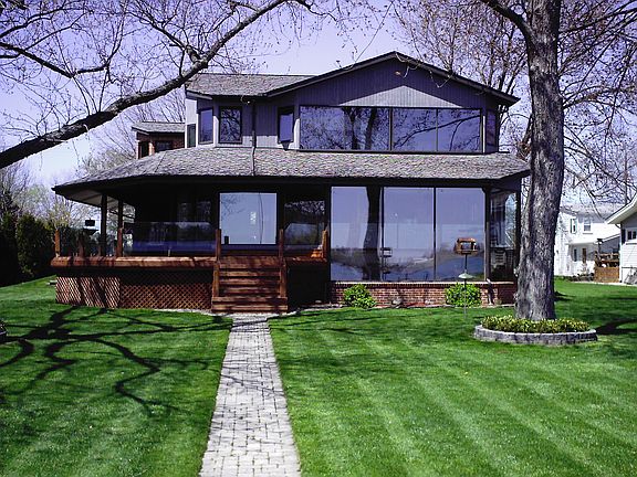 This must see 3800sq. Ft. totally rebuilt 2 story brick home is great for yr. round entertaining. Fantastic views of the river from every room, custom kitchen, upstairs laundry, original fireplace, wrap around porch, game room, sun rm., workshop, 4.5 car garage, 1st & 2nd floor master suites, 1 acre and much more to see! Short walk to stores, movies and restaurants and access to "Bridge to Bay" bike trail. River offers a great view of Fawn Island, boat dock, davit for jet skis and shallows for swimming. Contact Bill @ 616-292-5234 OR mc6715@yahoo.com