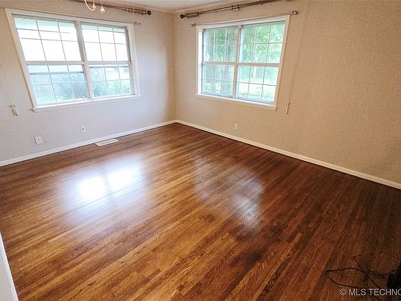 Welcome home to this inviting 3-bedroom, 1.5-bath home with a 2-car garage, right in the heart of Tulsa. Original hardwood floors add warmth and charm, while the flexible bonus room is ideal for a home office, playroom or cozy game space. Relax in the hall bathroom's walk-in tub with jets, or step outside to enjoy a spacious backyard complete with a newer shed equipped with electricity-perfect for hobbies or extra storage. Everyday living is made easy with a brand-new garage door, an indoor safe room storm shelter for peace of mind, and thoughtful updates like a newer sewer line. This home is nestled in a friendly neighborhood with quick highway access, putting shopping dining, and entertainment just minutes away. A wonderful blend of comfort, character and convenience awaits! Listing Agent related to seller.