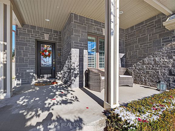 Wonderful 2 Storey home with Double Car Garage and fully finished Basement located in Talbot Village. This Highland Homes former model home has many upgrades including crown moulding, hardwood flooring, brick, stone and James Hardie cement board exterior. Conveniently located near Raleigh Parkette, shopping, restaurants, YMCA, Community Centre, Library, École élémentaire La Pommeraie, White Pine P.S., trails and quick access to the 401. This 5 Bedroom, 4 Bathroom home has been lovingly maintained and features a beautifully landscaped, fully fenced Back Yard with composite deck, stamped concrete patio, custom cedar pergola and flagstone path leading to the charming shed. The Main Level consists of an open-concept Kitchen overlooking the Dinette & Living Room with gas fireplace, 2 piece Bathroom and Den which could be utilized as an Office or Formal Dining Room. The well appointed Kitchen is highlighted by granite countertops, backsplash, centre island, corner pantry, backsplash and stainless steel appliances. There's also a Laundry/Mud Room. Upstairs, there are 3 generously sized Bedrooms and two 5-piece Bathrooms. The Primary Bedroom includes a large walk-in closet and 5-piece Ensuite with double sinks, soaker tub, tiled glass shower with in-floor heat while the Main Bathroom has double sinks, under cabinet lighting and in-floor heat. The Basement is fully finished and includes 2 Bedrooms, a 3-piece Bathroom, Recreation Room with gas fireplace, Cold Room and Utility/Storage Room. Includes 7 appliances, shed, patio string lights and California Shutters. Central vacuum and security system are roughed-in. See multimedia link for 3D walkthrough tour and floor plans.