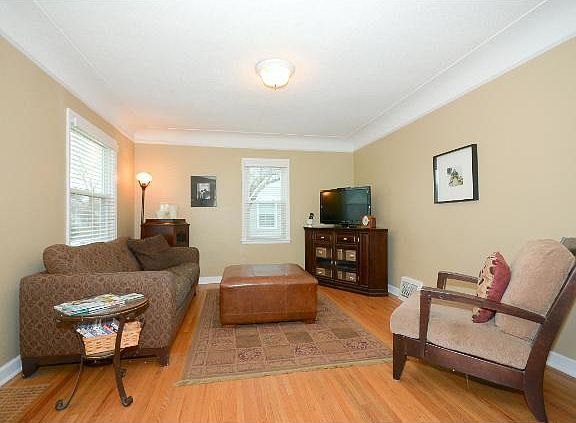 Super cute bungalow with designer touches. Eat-in kitch w/ corner bench seating, quartz counters tile backsplash. Wide open upper level with exposed brick chimney, new 3/4 bath down, great patio.
