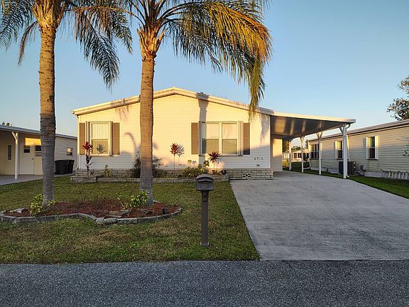Welcome in to this 3 bedroom 2 bath!!!/ Lot Rent includes all amenities at @1,081.00 month is cheaper than a 1 bedroom apartment or air bnb. Light and bright reminds you that you are in Sunny Florida. Enter into the foyer which leads you into the living room dining room combo in the center of the home. Large galley style kitchen that offers an eat in area and plenty of cabinets and counter space, Newer Vinyl Plank floors. Kitchen Sliders that go out to the enormous Great/ Family room with a wall of windows where you will spend most of your time relaxing and enjoying the views of the lake with fabulous sunsets and sunrises. The primary is just off of the dining area and has the en-suite with a large garden tub, double sinks and separate shower. The home offers the split bedroom floor plan with the second and third bedroom for your guest towards the front of the house. Both are good size with ample closet space. Just off the great room you can exit out to a large patio where you can cook up some great meals on your grill. The shed is a perfect size for your tools. Weather you're a snowbird or permanent resident there is plenty to do in our community, The lot rent covers use of all the amenities including lawn maintenance and trash. Enjoy the 18 hole Golf Course, there are many clubs for you to join and make new friends and start making new memories. 2 billiard rooms , gym, 2 heated pools one for Residents and one for Guest, Card Room, Workshop, Bocci, Tennis Courts for Pickle Ball- Tennis, Shuffle Board and so much more. We are located just minutes from the local beaches;, Downtown Fort Pierce where you can enjoy a walk on the Jedi taking in the Ocean views , enjoy the many Seaside Restaurants, Shops and Theatre. We are approximately 15 minutes to Vero Beach where you can also enjoy more Shopping, Restaurants