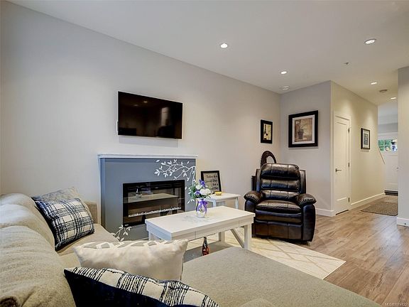 Wow, what a location! You are a 6 min. walk to the Village Food Market & 1 to the Sooke Brewing Co…and so much more in between. This lovely end unit is bright and pristine …offering 9' main floor ceilings, cozy living room fireplace, deluxe kitchen has clean lines, quartz countertops, soft close drawers/doors, stainless appliances & under cabinet lighting. The Primary bedroom with walk-in closet & sparkling 5-piece ensuite including tiled floors, double sinks & under kick LED motion activated lighting. The kitchen flows to the rear yard that is sunny and private and includes a storage. A great spot to chill or BBQ! Dogs & cats are welcomed, no size restrictions. You are a short stroll to all the core Sooke amenities…shopping, dining, schools, bus route, & and the list goes on and on. No disappointments here. Easy to view by appointment.