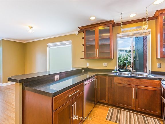 Affordable West Seattle Townhome minutes from Lincoln Park & steps away from Starbucks, Thriftway, popular eateries & cafes. Lower level entry with tile flooring, bedroom and dedicated full bath. The main level features a spacious kitchen w/ granite counters, Stainless Steel appliances, garden window and breakfast bar. Space for a dining table & living room furnishings around the wood burning fireplace. Upper level master with cathedral ceilings, huge closet spaces, ensuite bath with radiant flooring. Peak sound & mountains views from the master & main level to the west. REAL Bamboo flooring throughout main and upper levels, dedicated parking space & outdoor patio space. Set back from California. C-Line bus. Step into your new home no HOA's