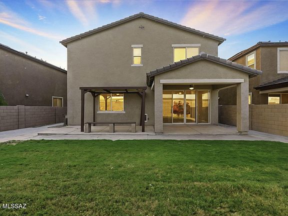 Welcome home to your assumable & spacious 2,633sqft Richmond American home built in 2022 in the award winning Vail School District. With 5 bedrooms, 3 bathrooms, and an upstairs loft, your home offers plenty of flexible space. The main floor features a large great room with an upscale, open kitchenand dining room. The kitchen boasts a large island, upgraded cabinets, and a walk-in pantry. Off the foyer is a full bedroom and bathroom perfect for a mother-in-law suite or guest privacy. At the top of the stairs is a generous-sized loft space and four bedrooms, including the primary retreat with a large walk-in closet. The large backyard is fully landscaped with trees and real grass, and plenty of room for a pool. The extended-length garage gives you extra room for larger vehicle Located on a desirable premium lot with no rear neighbors that backs directly to "The Loop" bike path and open space with unobstructed mountain views. This beautiful, thoughtfully upgraded home is move-in ready for you. Located in the highly desirable La Estancia community where you will love the great selection of schools available within the sought after Vail School District. La Estancia has direct access to 'The Loop', an interconnected system of more than 130 miles of paved pathways and bike lanes, as well as two community pools, splash-pad, basketball court, pickleball courts, playgrounds, and more than 8 beautiful parks. La Estancia is within close proximity to many major employers, including Davis-Monthan AFB, Tucson International Airport, UA Tech Park, Raytheon and Amazon. Call for your private showing of this stunning home today!