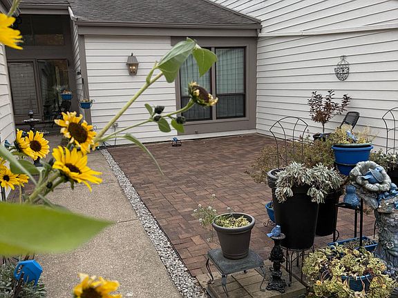 This is not your typical 3 bedroom Ranch Condo! Nothing boring about it! Murphy bed built into wall. Outstanding Updated En Suite with walk in closet & private Toilet. 3 Sets of Sliders onto patio's. Kitchen island on wheels & a HUGE garage! Mostly finished basement & the mechanical room has a wet sink. Mechanical systems are well Maintained. Beautiful private courtyard. This is an END unit (lots of sunlight). Location is Key(current owner uses 3rd bedroom as a den.)
