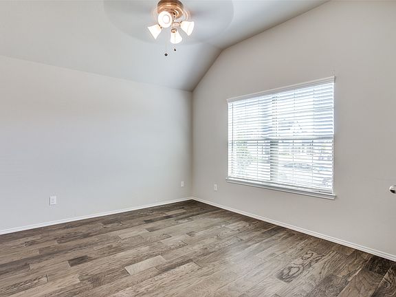 Welcome to this stunning single-story Antares Home, built in 2020 and nestled in the sought-after Trails of Marine Creek community. Blending timeless style with modern comfort, this brick-and-stone beauty invites you in with rich wood floors that flow seamlessly from the foyer into the kitchen, breakfast room, study, and family room. Behind elegant French doors, the private study overlooks the front lawn, offering the perfect spot for a home office or quiet retreat. The heart of the home is the open kitchen, designed for both function and style, featuring abundant cabinetry, granite countertops, a gas range, built-in microwave, spacious pantry, and a breakfast bar that connects effortlessly to the family room. Soaring vaulted ceilings, a wall of windows, and access to the covered patio make the family room a light-filled space ideal for gatherings. The oversized primary suite is a true retreat with its spa-like ensuite, complete with a garden tub, separate shower, dual vanities, and a walk-in closet. Three additional bedrooms and a full bath provide plenty of flexibility for family, guests, or hobbies. Enjoy the neighborhood lifestyle with walking trails right behind the homes and a large green play space just down the block. This home combines thoughtful design with everyday convenience.