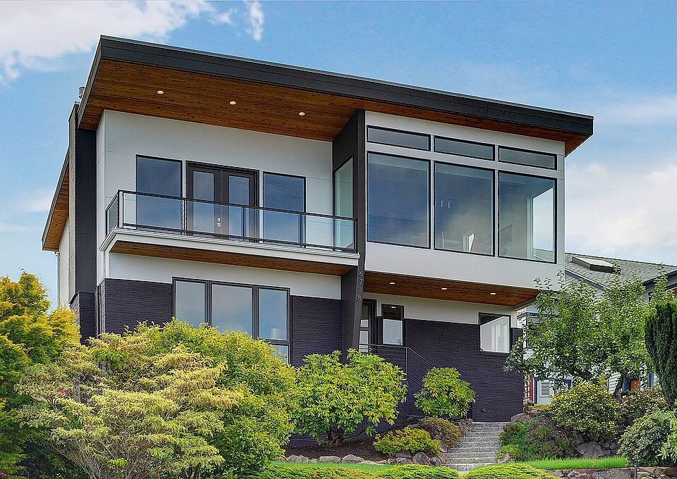 Fantastic new contemporary construction with unobstructed 180 degree views of Puget Sound/ Olympic Mountains. Stunning open floor plan w/ vaulted ceiling, designer tile fireplace, beautiful strand bamboo flrs and a view entertainment deck. The kitchen is a chefs dream, Viking gas range/refrig, large walk-in pantry and open eating bar. The view master suite with the European tile shower, will take your breath away. Lower level family room w/wet bar and second office. This home is a must see!