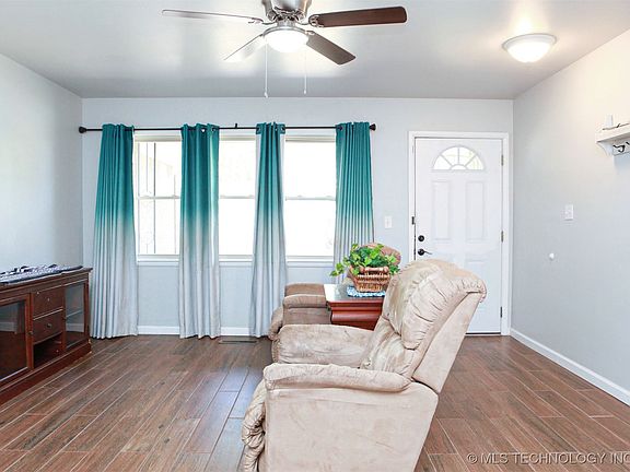 ONE STORY! First time home buyers & investors take note! 3 bedroom, 2 bath home includes 2 living areas. It features a brick fireplace, newer 50 gallon hot water heater, new vent fans & heaters in both bathrooms, large covered patio, covered porch & tile that looks like wood flooring throughout. The freshly painted open kitchen has a gas cooktop & built-in gas wall oven. Refrigerator & Microwave complete the kitchen appliances. At this price, you must come check this home out! MOTIVATED SELLERS!