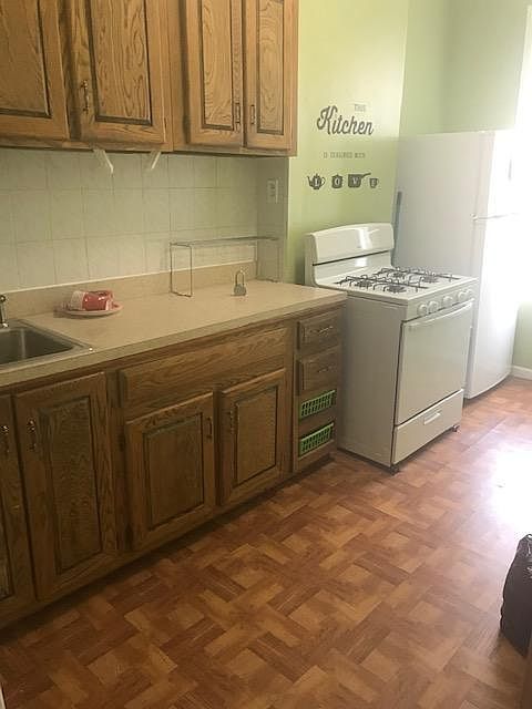 This apartment is a large three bedroom that is on the third floor of a commercial building with a walk in business that is not food. It is located on fresh Pond Road just two short blocks from the M train and all your shopping needs/restaurants/schools are within a few blocks. The pictures show carpeting in every room but there are wood floors under it. This place has great potential because of its size and just needs a little TLC. The landlord is great but she is an older woman and unable to paint etc. she however is willing to give a few weeks free so you can do it yourself if you are willing. The asking rent is $2000 given the size and location - it includes heat and hot water. The rent may be negotiable for two people - if you are interested in viewing it I have the keys so feel free to call the broker! It is ready now! Landlord pays the heat and hot water and the tenant pays the cooking gas and electric
