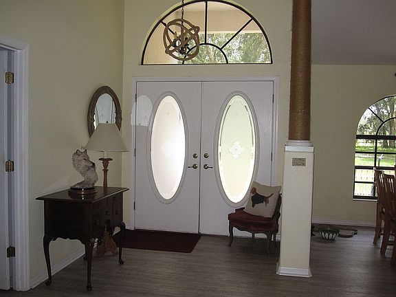 11 acre fenced farm. 3bd/2b 1931 sq. ft. home with screened in pool and lanai. All bedrooms have walk in closets, master has two. Master bath has linen closet., separate water closet, walk in shower and soaking tub with separate vanities. Master bedroom has trey ceilings. Great room has vaulted ceilings and wood burning fireplace. Kitchen has large island seats four and pantry. All appliances are included. Two dog doors for outside access. Barn has three matted stalls opening onto shaded corral. Drive through for farm tractor and drive in parking. Rodent free feed room. 24 x 24 shop is attached with 100 amp 120/220V. Garage door and access door. There is covered outside storage for farm equipment and has a gated hay storage area. All farm equipment can be included: tractor, brush hog, finish mower, rake, large and small dragger. Tractor manual included. Two large separate pastures fenced and crossed fenced three acres separately fenced around home for dogs. Three mile bridle path begins at back gate. 30 minutes to WEC.