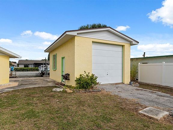 Waterfront Paradise with Direct Gulf Access! Welcome to your move-in ready waterfront home with quick Gulf access! This fully remodeled coastal retreat features 3 bedrooms, 2 baths, and everything new — including a 2024 roof, 2025 A/C, water heater, and modern kitchen with granite countertops. Concrete board throughout. Built for Florida living, this boating community gem offers over 223 ft of waterfront, a brand-new stationary dock, a 10,000 lb. boat lift— perfect for your boat or jet skis and also a floating dock. The detached garage with 11-ft ceilings easily fits a boat or camper, and the 10x11 enclosed shed adds extra storage or hobby space. Centrally located near top beaches, restaurants, shopping, and entertainment, this updated Florida home blends modern comfort, coastal style, and convenience for the ultimate beach lifestyle. Refrigerator, washer, dryer do not convey.