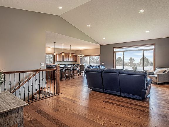 Main Level * Beautiful open foyer offers closet and stylish hardwood floors that flow into living room and kitchen - a warm welcome to any guest. * Gourmet kitchen features granite countertops with matching backsplash, elegant wood cabinetry, stainless steel appliances, wall oven and microwave, center island with gas cooktop, walk-in pantry, above the sink window, recessed and pendant lighting. * Dinette area offers abundant natural light and convenient access to covered deck area. Open floor plan. * Living room highlights vaulted ceiling with recessed lighting. Grand wall of windows brings the outdoors in. * Master bedroom features elegant deep tray ceiling with fan light plus recessed lighting, walk-in closet and tranquil views. Luxurious master bath with tile flooring, double sink vanities, window, sophisticated soaking tub and walk-in tiled shower with lighted rain shower. * Secondary bedroom offers ceiling fan light along with elegant sconce lighting and private access to full bath. * Attractive walk-through full bath with tile flooring, recessed and sconce lighting. * Laundry/Mud room includes utility sink, tile floor and garage entry door. Lower Level * French door entry leads you to the spacious recently finished family room with new carpet and recessed lighting. Great space for gaming, relaxing, entertaining and so much more. * Secondary bedrooms both include generous walk-in closets with so much to offer. * Impressive full bath with tile floor, new fixtures, recessed lighting, built-in shelving and so much space! Additional * Main level maintenance free covered deck and offers spacious vaulted ceiling. * Smart home technology includes main floor lighting, garage door and security cameras. * Heated garage with epoxy floor, hot and cold water access, built-in cabinets and shelving great for storage or workshop. Grill patio access door. * Garden beds and new evergreen privacy barrier. All information deemed reliable but not guaranteed.