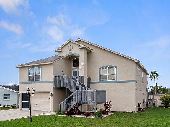 Wake up to panoramic water views and sunlight streaming through every window in this serene coastal retreat on Oyster Bayou! This beautifully maintained home blends charm and comfort, featuring an open-concept layout - perfect for both everyday living and effortless entertaining. Step out the French Doors to your enclosed sunroom — ideal for morning coffee, weekend gatherings, or simply soaking in the views of playing dolphins and manatee's, as well as, those gorgeous Gulf Sunsets. Unique architectural details throughout include; hardwood floors and updated finishes which add warmth and character. Whether you’re seeking a peaceful escape or a place to host unforgettable moments, this home provides the best that Florida has to offer. Built in 2001, and FEMA approved, it has 3 bedrooms and 2 full baths set up in a split floor plan. The first floor is being used as a recreation room, (pool table stays with the home), and also has a separate tandem 2 car garage. New A/C and Roof in 2022.- But Wait! The outdoor space is truly the gem of this location. Very deep back yard with an open air pergola, quaint sitting areas, a dock for fishing or wildlife watching, and magnificent water views. In less than a minute you are in the Gulf for a day of boating. Close to shopping and medical facilities. Just minutes to Green Key or a short golf cart ride to Downtown New Port Richey to enjoy the arts, trendy shops and bistro's.