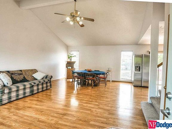Showings begin Saturday May 8 at noon. Wide open floor plan. Living room with vaulted ceilings (great room) is large enough to accommodate dining room table. In 2021, interior was freshly painted and new carpeting installed. Newer stainless steel appliances and breakfast bar in kitchen. Three bedrooms on 2nd floor. Primary suite has large walk-in closet and spacious 3/4 bath with double sinks and hard surface vanity top. Nice black vinyl covered chain link fence with 2 gates surrounds spacious backyard. New central air installed in 2017. Garage has abundant storage and heater. Nice mostly flat yard and nice patio. Good storage space in basement.