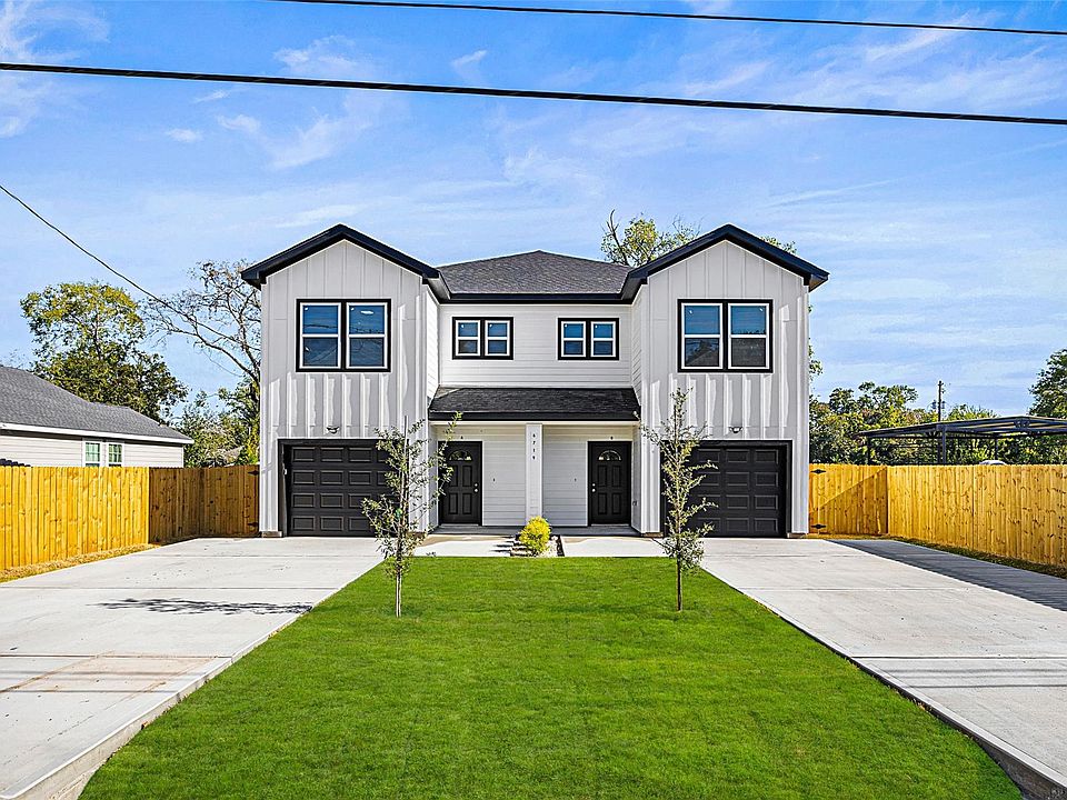 Introducing 6719 Roanoke St, a brand-new modern duplex offering one of the largest floor plans in its class at 3,400 sq. ft. Each unit features 3 bedrooms, 2.5 bathrooms, a private backyard, attached garage, and driveway parking for up to 4 cars per side. Conveniently located near I-69, Beltway 8, Downtown Houston, and Bush Intercontinental Airport (IAH), this home perfectly blends contemporary design with smart investment potential. Inside, enjoy an open-concept layout with abundant natural light and premium finishes. The kitchen showcases sleek cabinetry, quartz countertops, and a rare designated dining space. The spacious primary suite boasts elevated ceilings, a luxurious ensuite with dual sinks, and a walk-in closet. Additional bedrooms offer versatile space for guests, family, or a home office. An ideal opportunity for buyers or investors looking to step into homeownership with style and convenience.