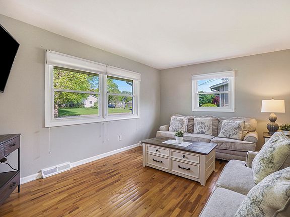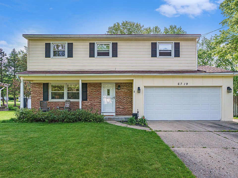 This lovely Portage 4 BR home features a gorgeous, updated kitchen w/all appliances, traditional floor plan with hardwoods floors (including under bedroom carpeting). Living room plus family room, a beautifully remodeled upper bath, replacement windows throughout, dining area with built in shelving, rec room in basement, new hot water heater and a fabulous inground pool by Master Pools. This is a quality Gunite pool (no liner to replace!) with heater, extra large deck, surrounded by beautiful landscaping and fenced yard, inground sprinkling, too. Vinyl & brick exterior, 20x22 attached garage.