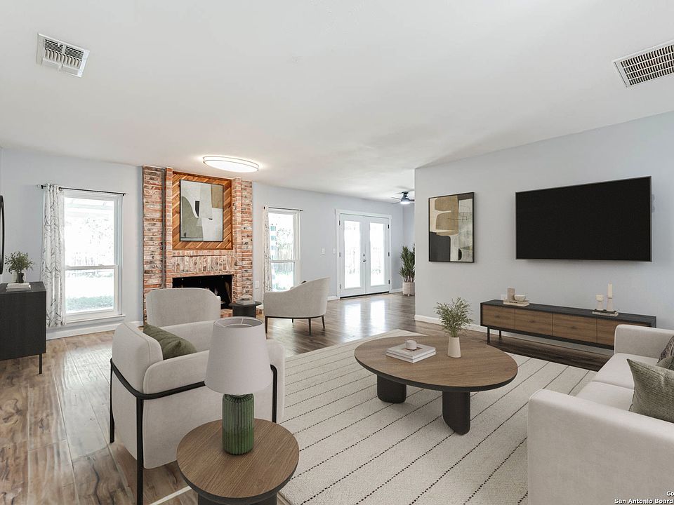 Move-in ready with major upgrades! This beautifully updated 2-story home sits on an oversized lot in a quiet, established neighborhood and offers a bright, open floor plan filled with natural light. Enjoy peace of mind with a brand-new roof, energy-efficient (paid off) solar panels, a new HVAC system, fridge, oven, stove top, dishwasher, water softener and new windows throughout! What more could you ask for? Step outside to a spacious covered back patio perfect for entertaining, and a large backyard complete with a storage unit. Inside, you'll find timeless hardwood floors, wainscoting and a chandelier in the formal dining room, and a dramatic floor-to-ceiling brick fireplace in the living area. The private owner's suite features double doors and a walk-in shower. A jetted tub adds a spa-like feel to the second bathroom. With generously sized secondary bedrooms, a massive upstairs game room, and a chef's kitchen featuring granite countertops, a stylish tile backsplash, and ample cabinetry-this home has it all. Don't miss your chance to own this upgraded gem!