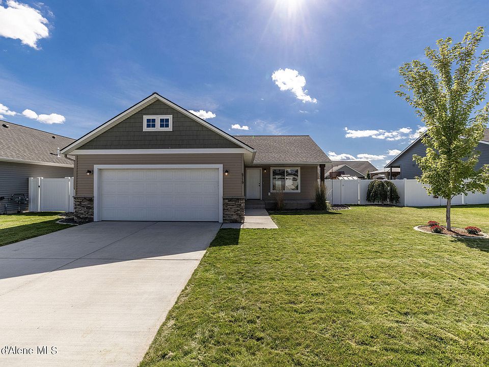 Immaculately Maintained & Better Than New Rancher in Sought-After Brookshire! Built in 2020, this turnkey home comes fully equipped with upgraded landscaping, front & rear yard lawn & full sprinkler system, fully fenced, oversized back patio, LRG covered front porch, A/C, upgraded laminate flooring, open concept floor plan with vaulted great room, dining & kitchen w/beautiful cabinetry, gas range & high-end appliances. Master bedroom includes a large walk-in closet, spacious en-suite bath with walk-in shower, dedicated laundry/mud room conveniently located off the 2-car garage. Enjoy the southern facing backyard while living in a fantastic location close to all that North Idaho has to offer. Professionally Cleaned, Move-in Ready & Pride of Ownership Throughout!