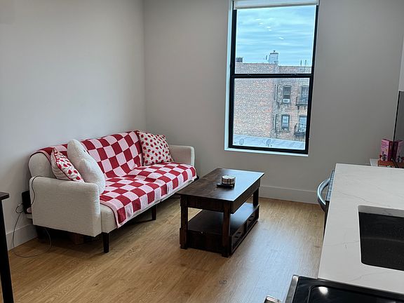 This Unit is brand new along with the rest of the building. My wife and I were the first tenants. This apartment is a one bedroom and one bathroom. The living area has plenty of space and the kitchenette has a dishwasher. There's a laundry facility downstairs, dumb waiter for trash so you don't have to go all the way downstairs, and an elevator. This area is very close to the Path Train that will take you to Manhattan in 20 minutes. It's perfect for anyone who commutes to NYC on a regular basis. We're on the 6th floor so you'll have an amazing view of McGinley Square.