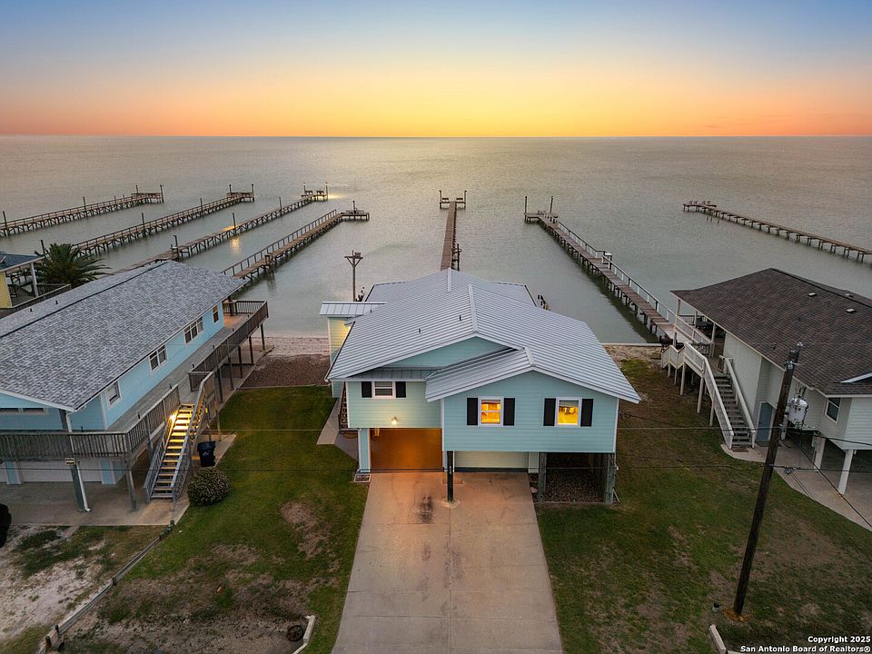 Luxury Bayfront Retreat on Copano Bay - Custom Home with Private Pier & Outdoor Elevator. Step into elevated coastal living...masterfully renovated by McDaniel Custom Homes, this 4-bedroom, 3-bath residence offers 2,600 sq ft of luxury and comfort, thoughtfully designed with high-end finishes, a split-bedroom layout with primary sized suites on main and lower levels, & breathtaking water views from nearly every room. Gourmet kitchen with upgraded granite, free-form countertops, custom alder cabinetry and premium appliances. Spa-inspired bathrooms with modern tilework and upscale fixtures. Spacious, light-filled living areas with an open-concept flow. Split-bedroom design offering privacy for guests. Built-in sound system for seamless indoor-outdoor entertaining. Outdoor elevator for convenient access to elevated main living areas. Exterior features set this home apart with 300-foot lighted T-Head private pier with built-in benches and fishing cleaning station outfitted with water-ideal for fishing, crabbing, sunsets, or launching your kayak. Bulkhead shoreline provides ongoing protection. Upstairs covered deck and downstairs slate covered patio provide extensive lounge space to revel in 24/7 panoramic bay views. Low-maintenance landscaping designed for year-round enjoyment. Two large storage areas for your nautical toys and golf cart or beach buggy. Located just minutes from Rockport and Port Aransas, yet tucked away in a peaceful bayfront community, this home blends timeless design with modern luxury...A real Copano Bay Beaute. Come experience the ultimate in waterfront living. Offered mostly turn-key. 1031 Exchange Friendly. Short Term Rental Allowed.