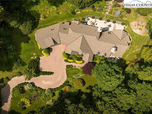 An Elegant French Country Style home privately situated on 4.5 wooded acres that includes a wonderful flowing stream off the primary bedroom sitting terrace. With quality and craftsmanship throughout that can be immediately seen as you enter the driveway and view the gorgeous limestone exterior walls, stately architectural stylings and its lush, landscaped grounds. Located conveniently off the Blue Ridge Parkway and only a few minutes from Blowing Rock, this home provides a carefully designed floorplan with easy level entry and main level living. On the main level you will find the large primary suite with 2 walk-in closets and outdoor sitting terrace, as well as a second bedroom suite if desired on this floor. The main level also features a large gourmet kitchen (with Wolf gas range & SubZero refrigerator), spacious living area with 2-story ceiling height, 2 fireplaces, dining room, separate den area away from the living room and a wonderful screened patio that views the lovely terraced gardens and outdoor firepit area. Upstairs you will find 2 more bedrooms, a full bath, a bonus room, plus an expansive family room over the garage that can serve as a movie theater area, exercise room, or many other unique uses. The outside of the home is equally as exciting with an open stone patio, terraced garden areas, raised planter beds, firepit with gas logs, sitting pad near stream with small waterfall, wooded walking path and a gentle walk can be made to the community common area with pond that is located across the street. Greystone IV is a gated community convenient to both Boone and Blowing Rock. Extremely private setting amongst the mature trees, this is a delightful estate setting. Generator for the home and a Tarheel Basement Systems encapsulated crawlspace. Some furnishings could be available.
