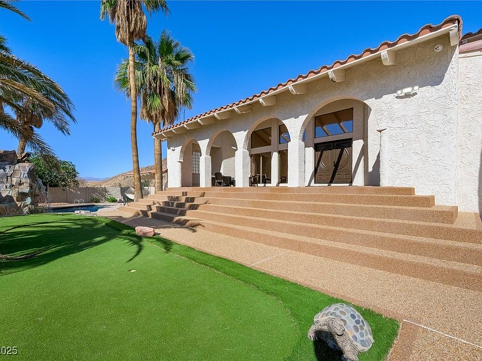 Perched at the end of a private cul-de-sac, this custom estate blends tranquility with city convenience. Surrounded by mountain views and natural desert landscape, the home offers direct access to hiking trails while remaining just minutes from downtown and the Strip. Inside, hardwood floors and natural finishes create a warm, timeless feel. Entertain with ease thanks to a fully equipped kitchen, expansive outdoor spaces, and thoughtful amenities including a soundproof studio and detached garage. Energy efficiency comes built-in with solar panels, new AC units, and whole-house water filtration. The grounds are designed for relaxation and recreation, complete with putting greens and shaded retreats. Rarely does a home combine this level of privacy, security, and connection to nature — all in one remarkable setting.