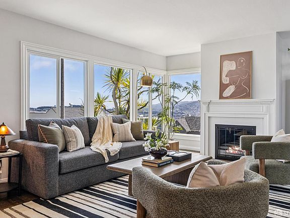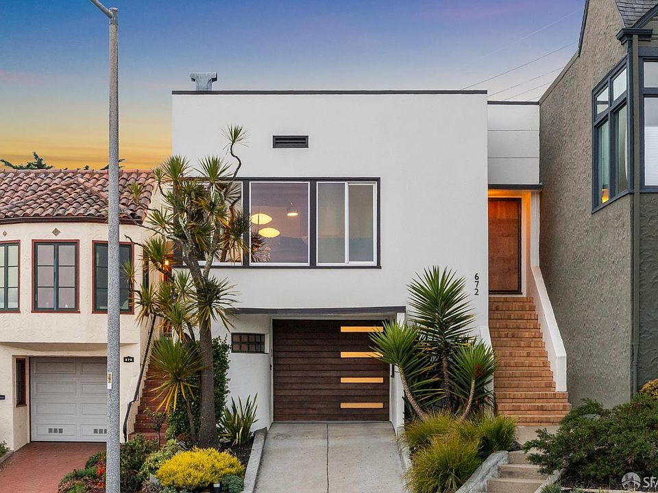 This turnkey, sophisticated 2BD/1.5BA Miraloma Park home includes a large flexible bonus room w/ closet, AC, and heat, offering an ideal space for a 3rd BD, office, or den. Classic style, indoor-outdoor living, views, elegant finishes, efficient upgrades, ample storage, 1 car garage, and workshop. Bright living room w/ fplc & corner window w/ views opens to a dining room w/ doors to center patio for easy entertaining. Bright kitchen w/ skylight, quartz counters, ssl appls plus laundry closet. 2 tranquil BDs have sliding doors to a large west-facing deck w/ stairs to the backyard, a peaceful outdoor living space w/ beautiful landscaping, views & flat levels for entertaining. Full tiled BA w/ shower/tub & shower stall plus guest half BA. Lower level features the bonus room plus a separate workshop/craft room & foyer w/ interior access to garage w/ storage. Solar panels, whole home battery backup, AC & heating, all electric appls & EV charger. Located in desirable Miraloma Park near shops & restaurants in Noe Valley, Glen Park Vill & West Portal. Near Sunnyside Playground & Glen Canyon Park, w/ BART, buses & freeway access nearby. Exuding casual elegance, this impeccable residence is built for a sustainable, comfortable & convenient city lifestyle.
