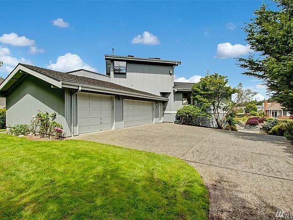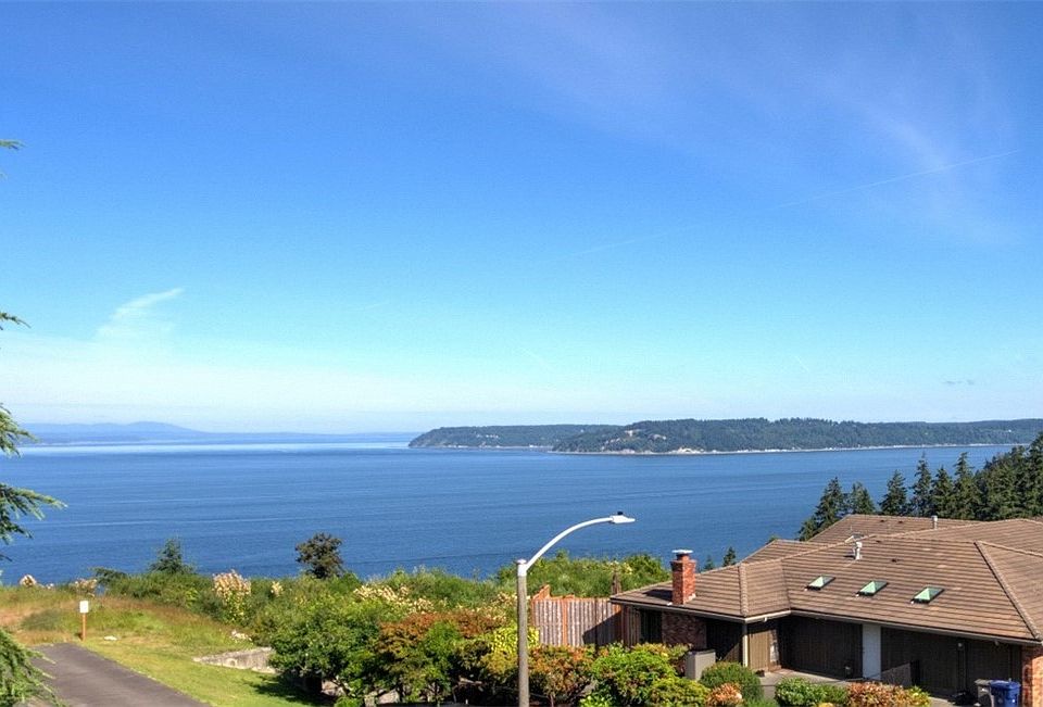 A Magnificent Picnic Point home w/Sound & Island views from several rooms! A light-filled, multi-level home w/hardwoods, vaulted ceilings, exposed beams, and gorgeous wood ceilings. Kitchen w/fireplace and newer stainless appliances opens to a large deck, private office w/built-ins, bonus room w/wet-bar and fireplace, and Master Suite with large 5-piece bath, walk-in closet, and private deck. Large manicured lot w/mature landscapes and a 3-car garage. Community Park w/Pond and walking paths.