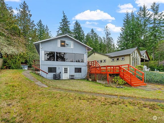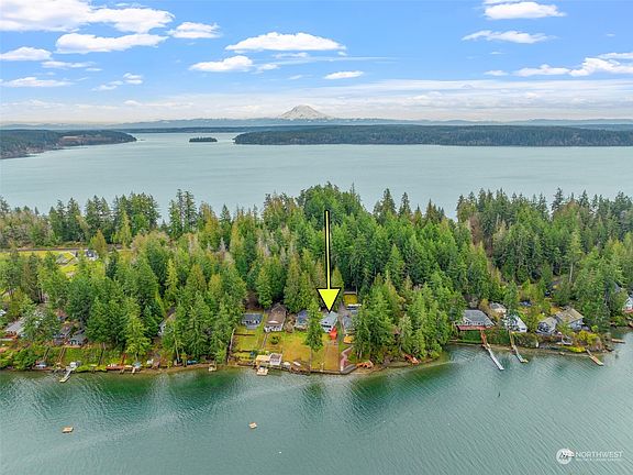 Your own slice of waterfront paradise on Filucy Bay features 50+ feet of low bank waterfront for swimming, kayaking and crabbing right from the yard. Large open concept living with kitchen and great room transitioning directly to large deck. Great potential for Airbnb/STR. Complete new interior paint, new carpet and new plank flooring. Newer roof, new septic system in 2014. Kitchen W/Breakfast Bar/Dining Area & Living Room face the Bay to enjoy Ever-Changing Marine Life & Sound Water Views! 1 bed on main and 1 bed + 1 bedroom Sized Bonus room upstairs. Main Level Laundry W/ Washer/Dryer. 384 SF Dry Basement Storage PLUS LG Storage Shed. 1 minute to public boat launch.