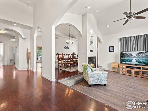 Beautifully maintained 4-bedroom, 3-bath ranch in the highly sought-after St. Michaels subdivision of West Greeley. Step inside and fall in love with the thoughtful design-arched architectural details, a cozy gas fireplace, and a formal dining room perfect for entertaining. The main floor boasts new LVP flooring in the living room and bedroom, adding warmth and modern style. The spacious kitchen is a true showpiece featuring granite countertops, a full tile backsplash, off-white cabinetry, custom tile flooring, and stainless steel appliances. The large primary suite offers a private retreat with access to the deck, and a luxurious five-piece bath designed for relaxation. Enjoy peaceful mornings or quiet evenings on the expansive deck overlooking the newly sodded backyard-accessible from both the kitchen and the primary bedroom. Smart home upgrades include a tankless water heater, new furnace, new air conditioner, smart thermostat, smart garage door opener, and a hardwired security system for added peace of mind. Nestled in one of Greeley's most desirable neighborhoods, this home blends comfort, style, and convenience. With its modern updates and timeless charm, this one checks all the boxes.