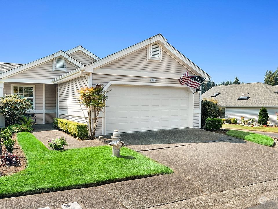 Discover the ultimate lock & leave lifestyle at The Ranch, a pristine gated community in sought-after University Place, minutes from Chambers Bay. This spacious one-level rambler offers the privacy of a single-family home with the ease of condo living. Featuring an ideal open floor plan; hardwood floors lead to freshly carpeted light-filled living spaces, perfect for living & entertaining. The spacious kitchen overlooks a private backyard garden & patio for outdoor enjoyment. The primary suite boasts an en-suite bath & large walk-in closet. 2nd bedroom, complete with built-ins, doubles as a home office. Enjoy the convenience of a 2-car garage, laundry room, even A/C! Prime corner lot; fully fenced for privacy & bathed in southwest sunlight.
