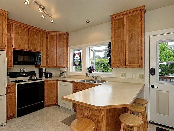 Street appeal is just the beginning! Lovely wireless views of the water & mtns. Peaceful outdoor spaces front & back. A sweet view LR greets you at the entry. Gorgeous mahogany trim & hdwd floors. Spacious eat in kitchen & 2 bdrms on the main. Master suite up (currently used as rec room) with bathroom and walk-in closet. Lower level features 2 bdrms, rec room, bathroom, storage & laundry. The rear deck, potting rm, & gardens are awesome. 2 additional parking spaces (boat/Rv) off the alley.