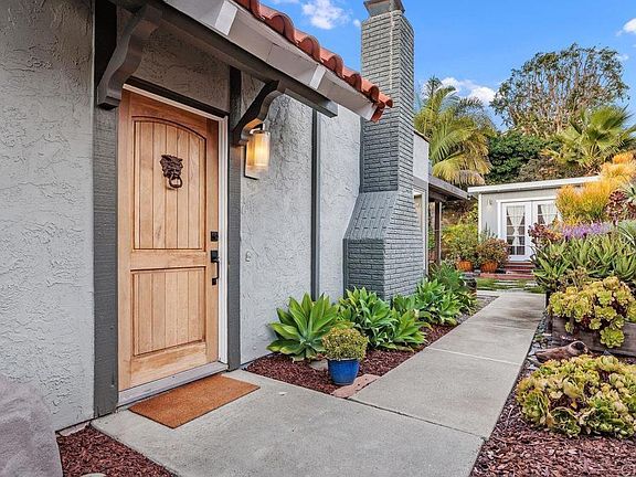 Stylish, remodeled single-level twin home located in the highly sought-after La Costa Meadows neighborhood (No HOA or fees). From the moment you enter, you’ll be impressed by the spacious great-room design, custom front door, beautiful hardwood floors, and abundant natural light. Three sets of French doors run the length of the back of the home and open to a large patio and beautifully landscaped yard—perfect for entertaining and embracing the indoor-outdoor SoCal lifestyle. Enveloped by mature tropical landscaping, the home is beautifully framed from every angle—from the welcoming front yard to the serene backyard retreat—creating a true oasis-like setting that enhances the home’s natural charm. The recently remodeled kitchen showcases shaker-style white cabinetry, a versatile movable island, quartz countertops, and a stainless-steel tile backsplash—combining modern design with everyday functionality. The spacious primary bedroom features its own set of French doors opening to a beautifully landscaped private patio, creating a tranquil retreat. Inside, you’ll find two closets, including one walk-in, and a remodeled en-suite bathroom with a dual vanity and custom walk-in glass-enclosed shower. A beautifully finished detached studio, just steps from the main home, provides the ultimate flexible space—perfect as a private office, art studio, or home gym. Upgrades include newer windows, roof, rerouted plumbing, AC/furnace, and beautifully remodeled 2nd bathroom. The finished garage further expands the home’s livable footprint, offering endless possibilities as a family game room, creative studio, or private retreat. Tucked away in a quiet, private, and serene location within the San Marcos School District, just blocks from the highly esteemed La Costa Meadows Elementary School.