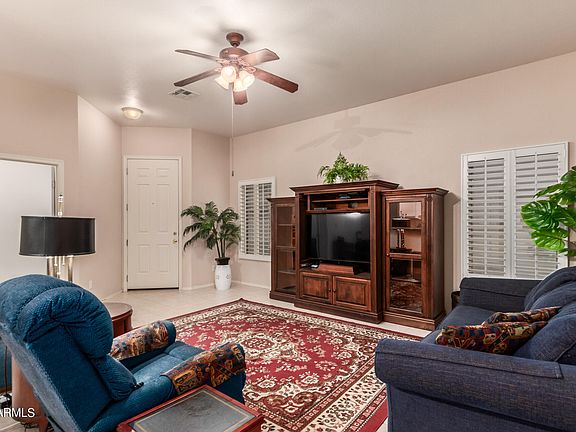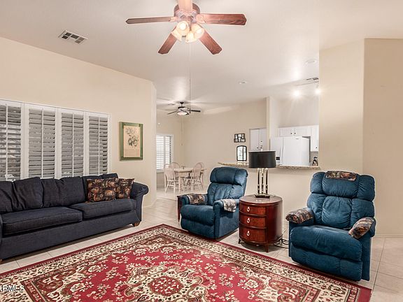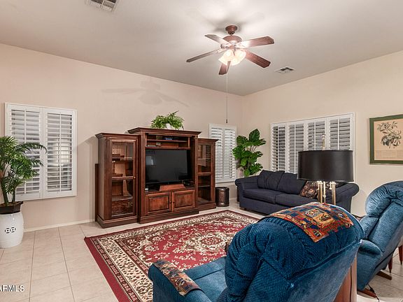 Beautiful home in pristine gated neighborhood. This gorgeous property is highly upgraded with tile every where except two bedrooms. This home has many upgraded features including a new AC unit, tankless water heater, softer water system, a walk-in shower with adjustable shower head, new plantation shutters throughout the home and newer appliances. The primary and additional bedroom have en suite bathrooms. Large 2 car garage with built in cabinets & workshop nook. Private backyard with covered patio is easy maintenance landscaping. Great location just four home down from the community pool and spa. Minutes from shopping, dining, library, parks, the 202 & the major recreation areas of the Superstition Mountains, Salt River, Saguaro, & Canyon lakes. This is a gem you'll be glad you showed.