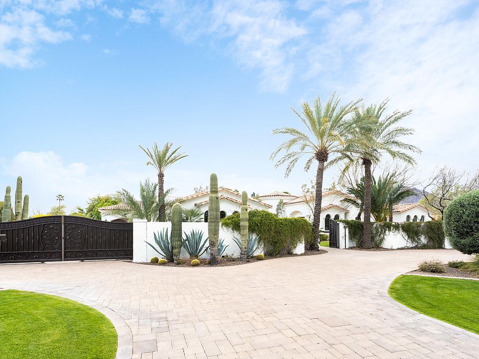 This privately gated home just finished a major remodel. Sitting on 1.09 acres this home captures Camelback and Mummy Mountain views. Split bedroom floorplan, office with a separate bathroom, wine cellar and media room. The master bedroom features a sitting area with a fireplace, two walk-in closets and a spacious bathroom. The kitchen is the perfect place to entertain with it opening to the family room and breakfast room. With lots of windows opening to the backyard, it captures the views and allow for natural light. The huge backyard allows for endless fun. A large grassy area, pool & spa with water features, outdoor fireplace, BBQ and a rooftop deck with views from every direction. Priced to sell and will entertain all offers!