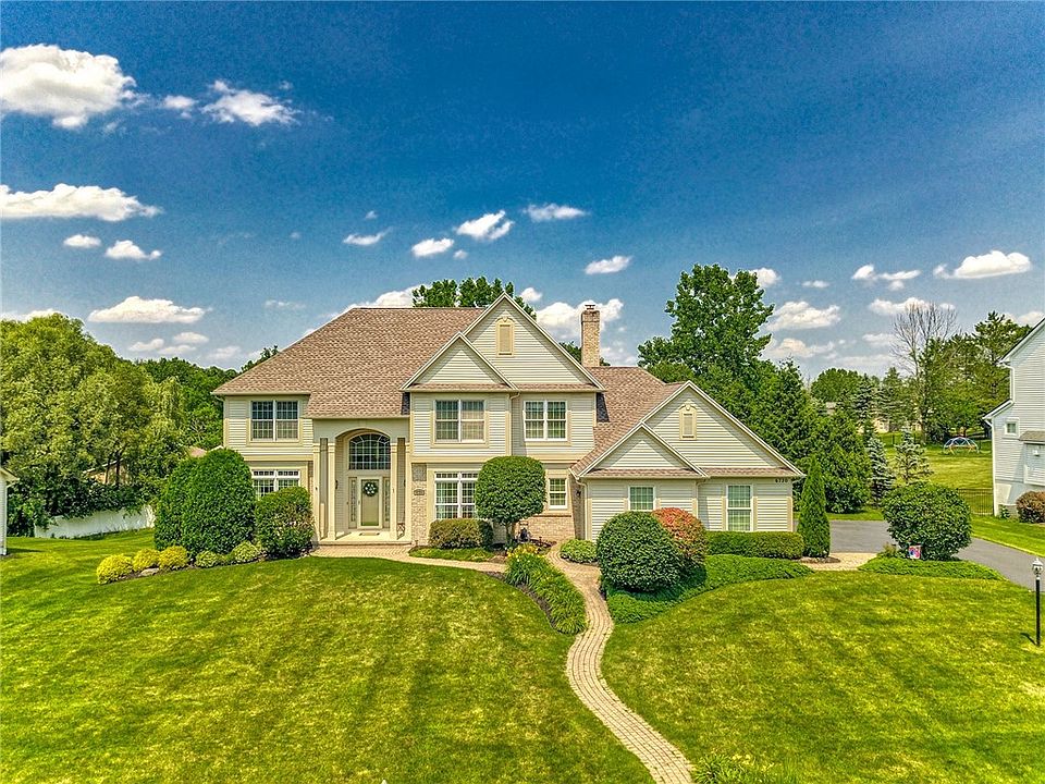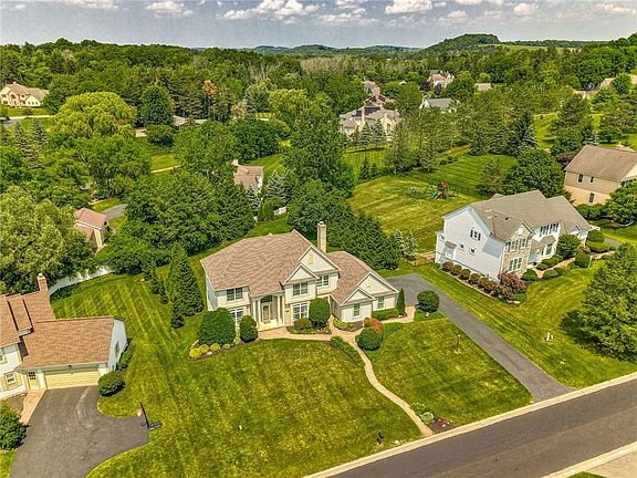 Beautiful 4/5 BR Victor Colonial! This property offers an abundance of space, comfort, and elegance. Step inside and be greeted by the warmth of this meticulously kept home. The kitchen is adorned with granite and is outfitted with SS appliances, combining functionality and style. Open, bright family room with wall of windows. The wood burning fireplace is the perfect focal point for cozy evenings! Entertaining is easy in the open space of the formal DR. Relax or dine al fresco on the rear deck! Sun filled office for your work from home needs.Upstairs you will find a spacious primary bedroom suite. The ensuite bathroom offers a touch of luxury with soothing jetted tub.Three additional bedrooms and second full bathroom complete the second story. Finished, walk-out lower level is perfect for another office, guest room, or private hang-outs! Create your own oasis in this tree-lined backyard, whether it's a lush garden, a playground, or a serene retreat to connect with nature. You'll enjoy the convenience of nearby amenities, including shopping, dining and golf. Newer roof, HVAC, and many new windows! Delayed Negotiations- Offers due Tuesday July 18th by 2PM