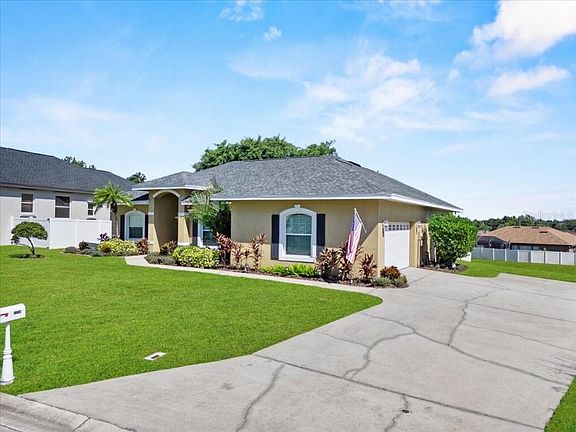 Welcome to this beautifully maintained move-in ready 3 bedroom, 2 bathroom corner-lot home in the back of the highly sought-after gated Highlands Creek community of South Lakeland (33813). This property is in a USDA 0$ down eligible area and also qualifies for FHA, VA, and conventional loans, making it an attractive and versatile option for a wide range of potential buyers. Major updates recently include a BRAND NEW (2025) ROOF and BRAND NEW (2025) A/C SYSTEM, both with transferable warranties, giving peace of mind for years to come. A completed wind mitigation report is also included, which may help reduce insurance costs. Additional highlights include a screened-in back porch, beautiful professionally-done landscaping, a fully fenced backyard, and an oversized side-entry garage with built-in storage and workbench, ideal for projects, hobbies, or extra space. Step inside to soaring ceilings, abundant natural light, and an open floor plan designed for modern living. Wood floors flow throughout the main living areas, leading to a spacious kitchen with Corian countertops, solid wood cabinetry, and stainless-steel appliances. The oversized master suite offers a private retreat with a large walk-in closet, dual vanities, garden tub, and separate shower. Conveniently located near top-rated schools, shopping, dining, and major highways, you’ll have an easy commute to Tampa, Orlando, or anywhere in between. Highlands Creek is a quiet, gated neighborhood with remarkably low HOA dues. Don’t miss your chance — homes here rarely last long, and this one is priced to sell quickly. Why this home stands out: • USDA 0$ down eligible area + FHA, VA, and conventional loan options • Brand-new roof (2025) with transferable warranty + wind mitigation report for potential insurance savings • Brand-new A/C system (2025) with transferable warranty • Oversized side-entry garage with built-in storage and workbench • Screened-in back porch overlooking a fully fenced backyard • Beautiful, professional, landscaped corner lot with great curb appeal • Open floor plan with soaring ceilings and abundant natural light • Wood floors in main living areas • Spacious kitchen with Corian countertops, solid wood cabinetry, and stainless-steel appliances • Oversized master suite with walk-in closet, dual vanities, garden tub, and separate shower • Quiet, gated community with low HOA dues • Convenient to top-rated schools, shopping, dining, and major highways Some photos have been virtually staged to show the use of space. Schedule your private showing today.