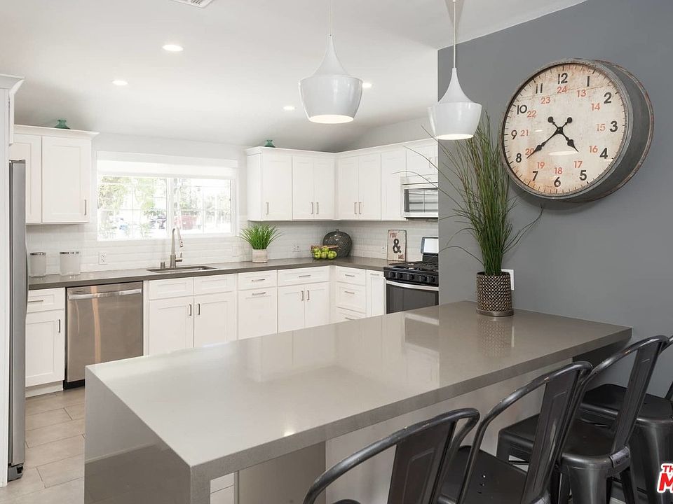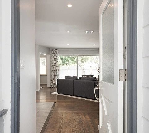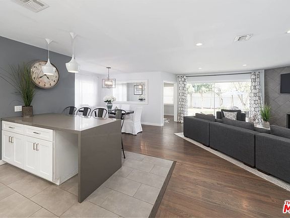 Completely renovated 3 bed, 2 ½ bath + office on a quiet street in Valley Glen! Open, modern layout with a brand new entertainer's kitchen features a huge island with breakfast bar, stainless steel appliances, and formal dining room. The bright, spacious living room showcases a redesigned fireplace, and a wall of sliding doors leads to a covered patio and large backyard with citrus trees and room for a pool. Master suite offers a zen spa-style bathroom and generous walk-in closet outfitted with built-in shelving and storage. 2 additional bedrooms plus an office that could double as a playroom or 4th bedroom. Additional features include 2 car garage, indoor laundry room, plantation shutters, recessed lighting and solid hardwood floors throughout. Clean lines, open space, and contemporary finishes invite you to call this one home!