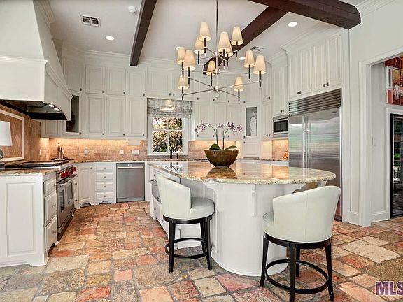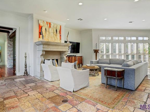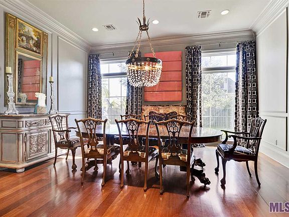 Enter thru an arched entry into this Stunning Southern French home in prestigious gated Bocage Lake! Walk to Towne Center and enjoy many upscale restaurants! As you open the double doors you are amazed by the large courtyard with slate flooring, a fountain, gas lanterns and a second story balcony overlooking this beautifully planted area. The 5 bed, 5 1/2 bath home features a triple bedroom split and multiple living areas for daily living and entertaining.Each bedroom has an ensuite bath! Upon entering the front door of the home you are greeted by a large dining room with fireplace, plus a room perfect as your study/office. Turning right is an oversized den/LR with stone flooring which is open to the Gourmet kitchen that is equipped with a Wolfe gas range, 2 ovens, Dacor warming drawer , 2 Fisher Paykel dishwashers and a 48" Sub-Zero refrigerator. All of this area overlooks the rear yard and courtyard with large window walls to allow plentiful light! This is adjoined by a butler pantry with EuroCave wine cooler, icemaker and large 5x11 walk in pantry. The sitting room comes nest and is perfect to host wine tasting! Continuing on you find the laundry guest bath and additional bedroom. Up the stairs you go to a large media room or home office which has a half bath attached and access to a large room perfect for a fitness space! You may also access this area from the triple garage!! Back downstairs to the left of the home you find the MBR which overlooks the courtyard with double doors and a large MBR bath with 2 vanities and 2 closets! Up the stairs you find 3 bedrooms each with it's own bath and a 16x17.5 playroom! 2 bedrooms overlook the courtyard from their own balcony. The home has wood floors thruout except for the kitchen and bath. Don't forget the back porch Lanai! Equipped with outdoor fireplace and Dacor gas grill and is the perfect place to lounge in the afternoon. The yard is completely fenced and roof is only 2 years old!