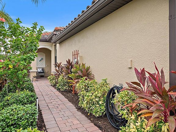 Welcome to your Florida Paradise located in the well-established community of River Strand Golf & Country Club. This beautifully maintained 2-Bedroom, 2-Bathroom Villa includes a Den/Office that can easily serve as a THIRD Guest Bedroom. Enjoy peaceful POND views from the enclosed Extended Lanai with a Retractable Awning, and Ceiling Fan — the perfect spot for relaxing or entertaining outdoors. The home features a bright Open-Concept floor plan with recently updated Luxury Vinyl Plank Flooring in all bedrooms and the den — waterproof, durable, and easy to maintain. NO CARPET. CROWN Molding throughout. All bedrooms feature Ceiling Fans with Lights, adding both comfort and functionality. The kitchen showcases elegant Granite Countertops, Under Cabinet Lighting, and a stylish Breakfast Bar with included barstools. It flows effortlessly into the Dining and Living areas, enhanced by added Recessed Lighting and Direct Access to the Lanai — perfect for entertaining or simply enjoying the Florida lifestyle. The Primary Suite includes TWO Separate Closets and an En-Suite Bath featuring dual sinks, a soaking tub, separate shower, and private water closet. Laundry Room features included washer/dryer along with built-in Cabinets for additional storage. The TWO-Car Garage provides ample storage and was recently resurfaced with an industrial-grade Polycuramine finish for a clean, POLISHED look. Metal Hurricane Shutters are included. Residents of River Strand enjoy an exceptional array of Resort-Style amenities included with the SOCIAL Membership. The amenities feature 8 Swimming Pools, including a resort-style pool with a Tiki bar and grill, Tennis and Pickleball Courts, Two Fitness Centers, and a Full-Service clubhouse offering Social Events and Activities throughout the year. The 27-hole championship golf course, designed by Arthur Hills, is available on a pay-as-you-play basis, this home is NOT a golf-deeded property. A 24-hour Guarded Gate provides added Security and Peace Of Mind for Residents. Conveniently located near the Bradenton MARKET Place, offering a variety of shopping and dining options, and just minutes from the beautiful beaches of Bradenton and Sarasota, this villa offers the perfect combination of comfort, lifestyle, and location — ready for you to enjoy the Florida way of life.