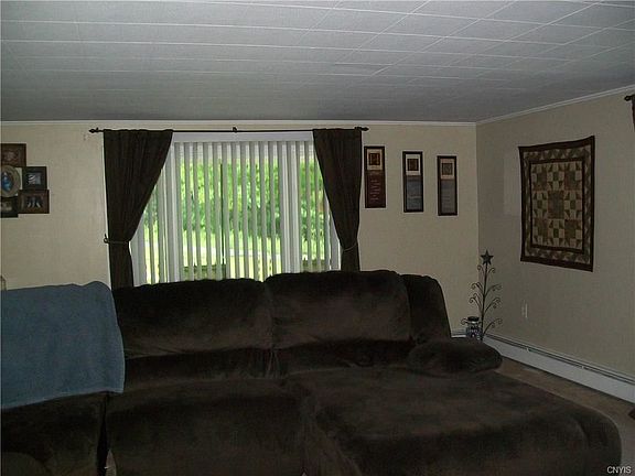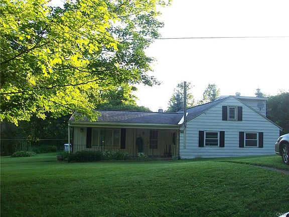 This home sits on .83 acres. 330 feet frontage /110 deep lot. Very private yard with an above ground pool out back with a deck to relax on. Covered back patio for your summer cook-outs. 1 1/2 baths , den , eat in kitchen, dining room, 2 First floor bedrooms, 1 bedroom upstairs. Mature trees & perennials abound. The detached 2 1/2 car garage has power & a workshop. First floor laundry hook- up. Hot water heat, newer windows, new kitchen floors, gutters & railings on the covered front porch. New carpeting throughout. Full bath remodeled with new tub, toilet & sink. Close to Cazenovia, Jamesville , Dewitt & Lafayette.