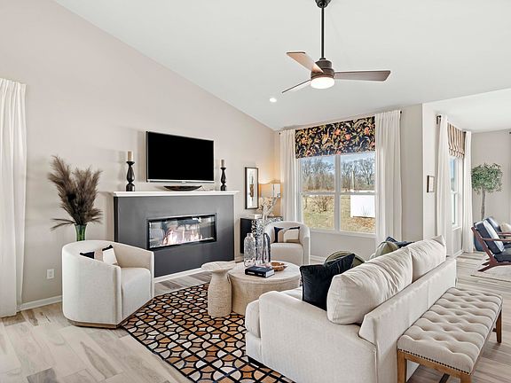 Proposed new construction in Grand Ridge Sterling, a low-maintenance community where lawn care and snow removal are included. The Copenhagen--one of our most popular ranch floor plans--offers 1,800 sq ft, 3 bedrooms, and 2 baths, designed for buyers looking to right-size into modern, single-level living with smart storage and an open, efficient layout. Standard features include: 9' ceilings, quartz countertops, luxury vinyl plank flooring in all wet areas, Mohawk carpeting, a tankless water heater, and full landscaping. The kitchen offers a generous island and opens to the breakfast area and great room for connected, everyday living. The primary suite and Bedroom 2 both offer walk-in closets, giving this plan exceptional storage for its size. Built on a slab with options for a sunroom or basement, the Copenhagen still allows buyers time to personalize selections. Grand Ridge Sterling features a community walking trail and access to a nearby park with gazebo. Located in Winfield Township / Crown Point Schools, the community offers easy access to downtown Crown Point, I-65, shopping, dining, parks, and medical facilities. A standout choice for buyers seeking main-level living, right-sized design, and low-maintenance new construction in a highly desirable Crown Point location. Photos are of a model home and may show optional features not included in the base price