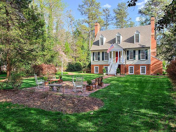 Beautiful Custom Crafted Cape Cod nestled on 2.98 acres of beautifully landscaped, private grounds. Beautiful Williamsburg inspired architecture and touches inside and out! Home features include: beautiful pine wood floors throughout first and second floors, large eat-in kitchen with stainless steel JennAir appliances, a classic brick wall fireplace that leads into a huge and bright sunroom with 2 giant skylights with views of the charming back yard! 3 good sized bedrooms all have their own private baths which are updated with granite topped vanities, formal dining room and living room and a large family/recroom with brick alcove in the walk out basement. Other features include: whole house Generac generator, copper gutters, Andersen True divided light windows, large 2 car Garage with finished Room above (23’x17’11” – 2 closets), Large Detached Workshop with Electricity based on Williamsburg Architecture, 4 masonry fireplaces, 40 year roof, attached storage shed and deck with vinyl wrapped railings. You do not want to miss this ONE OF A KIND home!